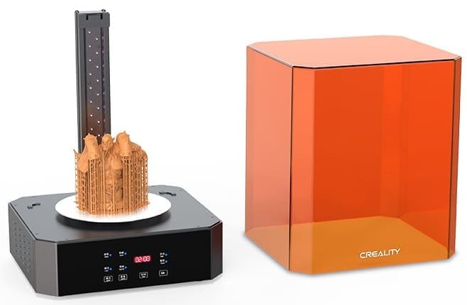 Es recomendable disponer de una máquina de curado y lavado CREALITY UW-02 para automatizar el post-procesado de piezas impresas en resina, y a la vez ahorrar tiempo y dinero.